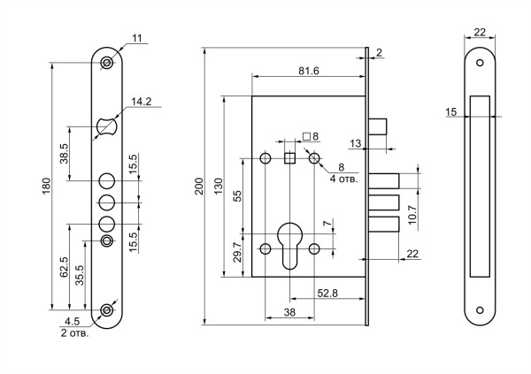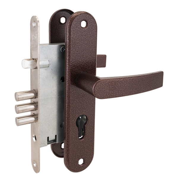 Замок Рязань врезной ЗВ 4-31/55.РФ.55-002.У4 с ручками медь без ц/мех.б/о 78930 м/о 55мм